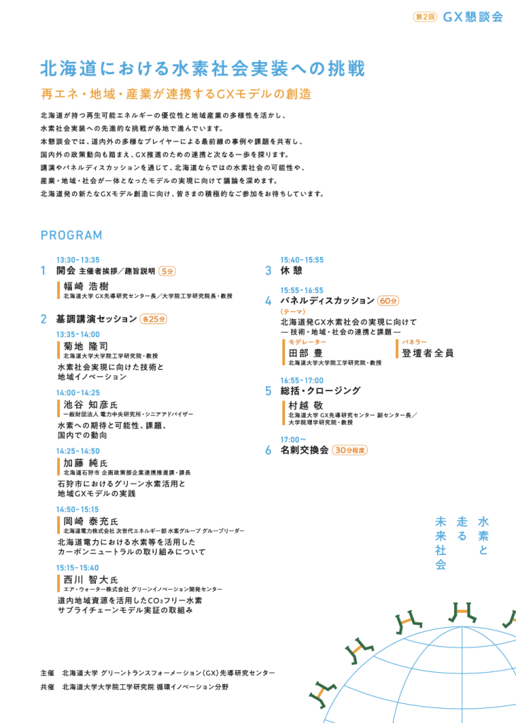 問合せ:北海道大学GX先導研究センター(GXC)事務局 ( info_gxc(at)eng.hokudai.ac.jp ) ※(at)は@に変換してください。